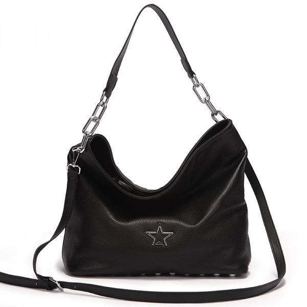 Стильная и практичная сумка-хобо из мягкой натуральной мелкозернистой кожи. Сумка закрывается на молнию и оформлена фурнитурой в серебряном цвете. Удобные ручки позволяют носить сумку на плече, а дополнительный ремешок через плечо. Модель дополнит расслабленный повседневный образ, а также прекрасно впишется в ваш офисный гардероб. Внутри: один отдел с карманом для документов на молнии и двумя кармашками для различных мелочей Снаружи: задний карманы на молнии Дополнительно: регулируемый плечевой ремень от 110-128 см.