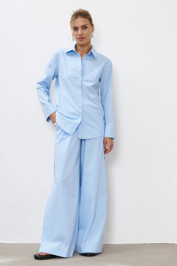 Комфортные брюки из хлопка. Модель свободного силуэта со средней посадкой на регулируемой кулиске. В боковых швах карманы и разрезы выше колена.