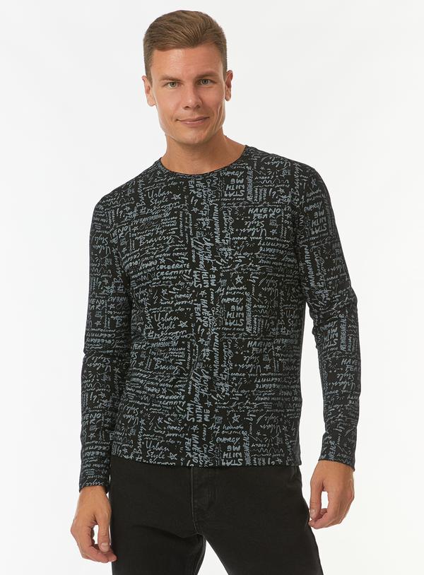 Принтованная футболка прямого кроя с длинными рукавами. Хлопковый трикотаж позволяет коже дышать, хорошо тянется, обеспечивает оптимальную посадку и комфорт в течение всего дня. Сплошной принт, состоящий из разноформатных надписей, делает лонгслив акцентной деталью ваших кэжуал комплектов.