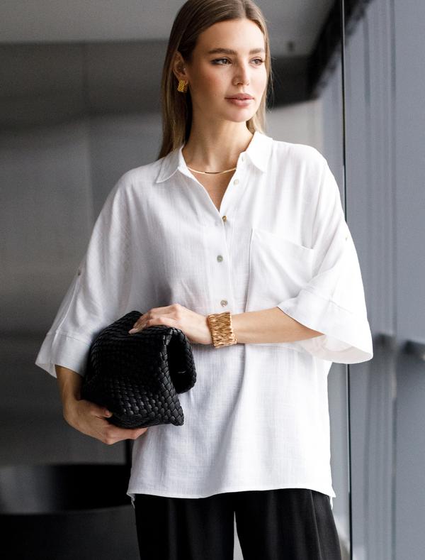 Блузка с цельнокроеным рукавом изо льна с вискозой