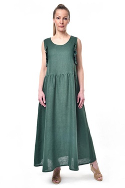 <p><p>Сарафан льняной женский #006 свободного силуэта, отрезной, линия талии завышена на 2 см. Верх платья свободный, спинка выполнена со средним швом, нижняя часть присборена по линии членения. Горловина и пройма обработана окантовкой, нижняя часть проймы украшена декоративной рюшей из основной ткани, заложенной в бантовые складки. Сарафан льняной женский #004 изготавливается из 100%-й льняной ткани.</p><p>