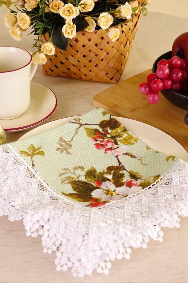 Салфетка из рогожки с кружевом 009 Яблоневый цвет (зеленый) (вид 4)