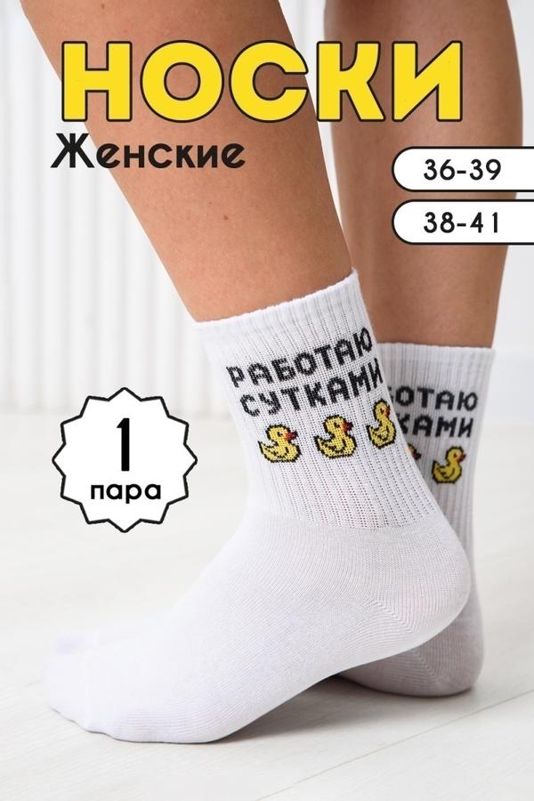 Милые женские носочки с изображением утят и надписью Работаю сутками. В комплекте 1 пара. <br><h3>Ткань</h3><p>чулочно-носочный трикотаж</p><h3>Состав</h3><p>76% х/б 22% ПА 2% эластан</p>