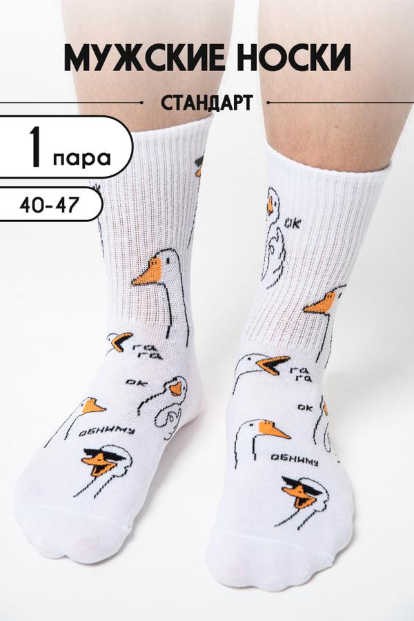Трендовые мужские носки с гусем. Эта птица покорила сердца многих людей. Комплект 1 пара с изображением популярного гуся. <br><h3>Ткань</h3><p>чулочно-носочный трикотаж</p><h3>Состав</h3><p>76% х/б 20% ПА 2% ПП 2% эластан</p>