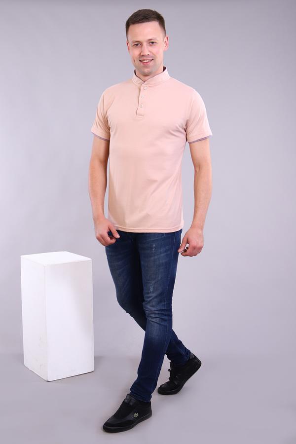 Футболка мужская из ткани кулирка с лайкрой качество пенье. Футболка с коротким рукавом, воротник стойка с контрастной отделкой на стойке и рукаве, планка на трех пуговицах. Модель комфортная, стильная и удобная. Не деформируется и не теряет цвет после стирки.<br><h3>Ткань</h3><p>кулирка с лайкрой пенье</p><h3>Состав</h3><p>92% хлопок; 8 % лайкра</p>
