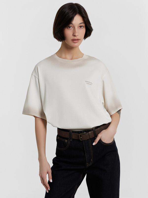 Хлопковая футболка свободного силуэта из трикотажного полотна кулирка. Горловина круглой формы. Свободу движений гарантируют спущенная линия плеча и углубленная пройма. Рукава широкие, чуть выше локтя. Стильная модель!