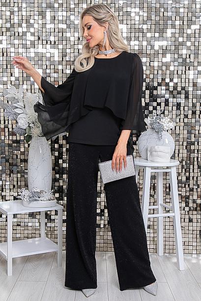 Нарядная двухслойная блузка из трикотажного полотна и нежного шифона. Cостав: 30% вискоза,65% п/э,5% лайкра