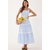 по линии талии. Нижняя часть платья состоит из воланов со сборкой и декоративной тесьмой. В