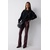 Описание Брюки прилегающего силуэта расширенные книзу из экокожи. По верху притачной пояс с застежкой на петлю и пуговицу. На передних половинках обработана застежка молния в среднем шве. По низу брюк в боковом шве шлица.Обращаем ваше внимание, что фурнитура может отличаться от фото.