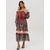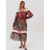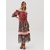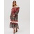 Платье силуэта трапеция с V-образным вырезом горловины. Рукав втачной одношовный . Низ рукава собран на запястье венгеркой. Перед, рукав и спинка с кокетками выполненными из кружева. По шву притачивания вставлена рюша. В горловине переда на уровне кокетки-завязки. Платье отрезное по талии с рюшей по шву притачивания. Платье приталеное с помощью резинки. Нижняя часть юбки с двумя воланами и рюшами по шву притачивания. Верхний волан выполнен из кружева. Нижний волан притачан со сборкой. Платье на подкладке. Длина платья по спинке - 126 см, длина рукава - 63 см.