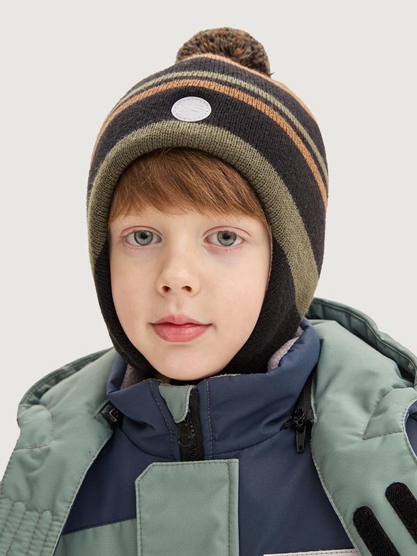 Сезон: ЗИМА. Пол: Мальчик. Категория товара: Шапки. Цвет: черный/полынь. Мембранная одежда: Нет. Ткань верха: шерсть 50%, акрил 50%. Подкладка: хлопок 100%. Температурный режим: от 0°С до -25°С. Утеплитель: 80 гр.. Мех опушки: без опушки