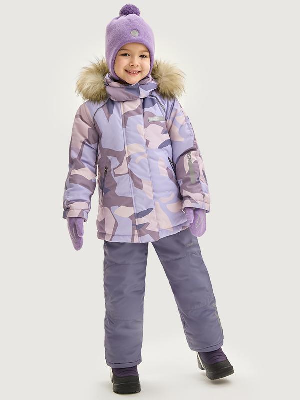 Сезон: ЗИМА. Пол: Девочка. Категория товара: Костюмы (куртка и полукомбинезон). Цвет: лаванда/инжир. Мембранная одежда: Да. Ткань верха: МЕМБРАНА BREATEX Teflon 5000/5000 (100% полиэстер). Подкладка: флис + п/э (100% полиэстер). Температурный режим: от 0°С до -30°С. Утеплитель: fiberlite 300 (100% полиэстер). Мех опушки: искусственный