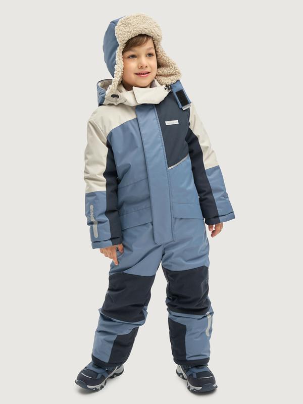 Сезон: ЗИМА. Пол: Мальчик. Категория товара: Комбинезоны. Цвет: деним/неви. Мембранная одежда: Да. Ткань верха: МЕМБРАНА BREATEX Teflon WR 5000/5000 (100% полиэстер). Подкладка: флис + п/э (100% полиэстер). Температурный режим: от 0°С до -25°С. Утеплитель: fiberlite 250 (100% полиэстер). Мех опушки: без опушки
