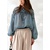Блузка из воздушной вискозной ткани, прямая свободная со спущенным плечом, центральной застежкой на петли и пуговицы, длиной ниже линии бедер. По полочкам отрезные кокетки со сборкой по плечевому срезу и шву притачивая к полочке. По спинке также отрезная кокетка. В швах притачивания кокеток - кулисы со шнуром из основной ткани. Рукав одношовный широкий длинный, по низу на узкой резинке. Воротник стойка. Состав: 86% вискоза, 14% ПЭ
