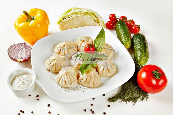 Вкуснейшее блюдо грузинской кухни. Ароматные хинкали с мясом свинины, говядины и зеленью.