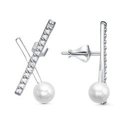 ЗАО "Красная Пресня",Серебро 925 пробы,Имитация жемчуга, Фианит (недрагоценный камень),Имитация жемчуга Шар d6.0мм 2шт; Фианит (недраг. камень) Круг 1,5мм 26шт,Родирование,3.23 гр,18 мм,25 мм