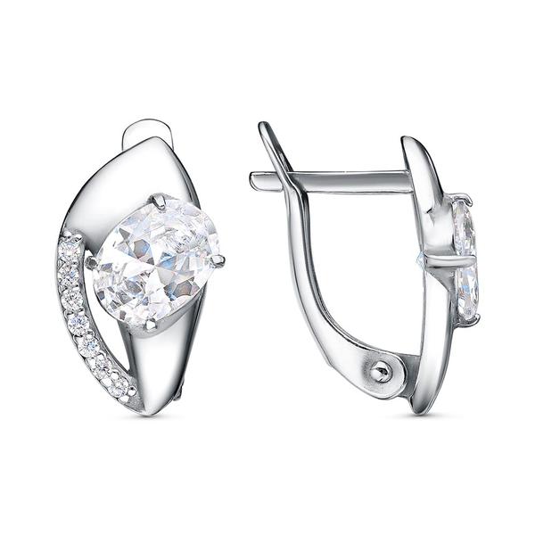 ЗАО "Красная Пресня",Серебро 925 пробы,Фианит (недрагоценный камень),Фианит (недраг. камень) Круг 1,25мм 14шт; Фианит (недраг. камень) Овал 8х6мм 2шт,Платинирование,3.87 гр,10 мм,17 мм