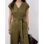 Комбинезон свободного силуэта со спущенным плечом. По переду горловина оформлена V- образно. Талия фиксируется на эластичную резину по спинке. По спинке потайная молния. В комплекте пояс-кушак.