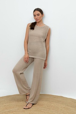 Вязаные ажурные свободные брюки с подкладом. Состав 50% хлопок, 50% акрил. Благодаря акрилу в составе изделие не пилингуется.