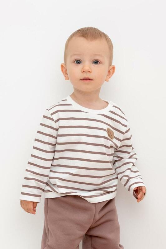 Джемпер для мальчика из высококачественного хлопка. Для удобства на плече предусмотрена застежка на кнопки. Оригинальная набивка выполнена из стойких текстильных красителей.