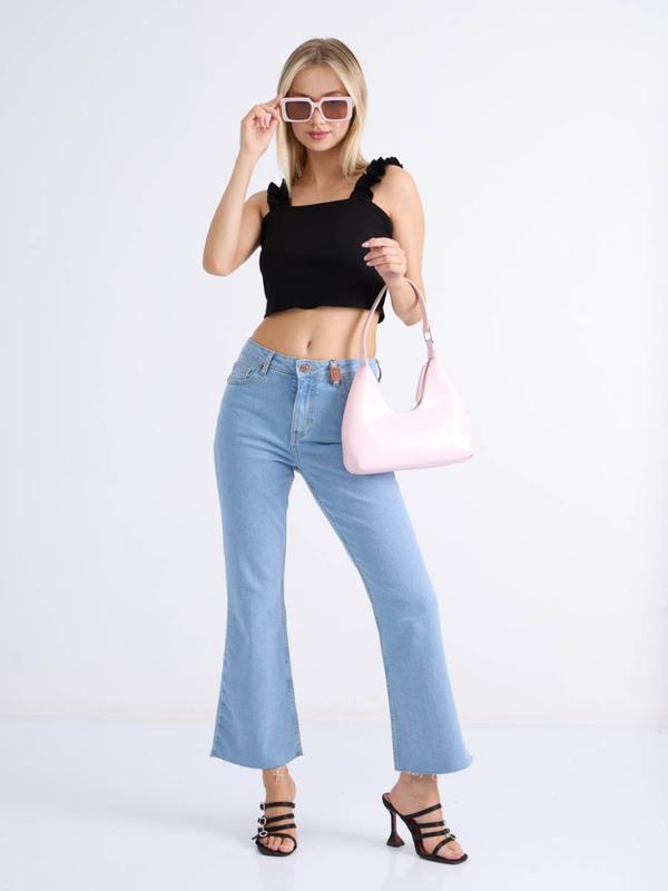 Артикул: 19838 Женские джинсы с пятью карманами. Посадка Flare fit (полуоблегающие по бедру и расклешенные от колена), высокая талия, укороченной длины. Для улучшения посадки по талии сделан подкройной пояс из 2-х частей. Застежка на молнии. Выполнены из слабоэластичной ткани denim stretch. Классическая светлая стирка "stone wash"с отбеливанием. Состав: 99%Хлопок,1%Эластан Фит: Flare fit Плотность: 11 Oz Талия спереди: высокая Талия сзади: высокая
