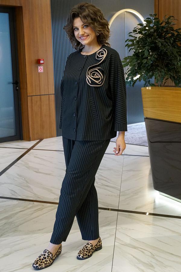 / Костюм ALANI 2414 черная полоска, бежевая вышивка