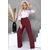 Брюки из плотного хорошо держащего форму трикотажного полотна в полоску, с высокой посадкой по талии застегивающиеся на молнию в гульфике.Пояс притачной с застежкой на пуговицу.Для удобства в носке пояс по спинке собран на резину.По бокам подрезные функциональные карманы.