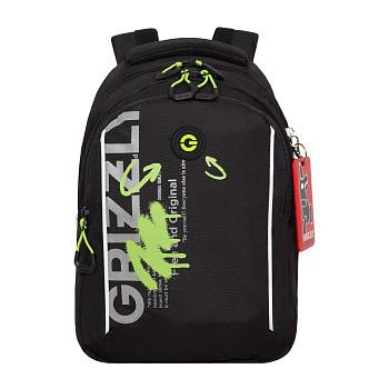 RB-452-3f Рюкзак школьный / черный - салатовый