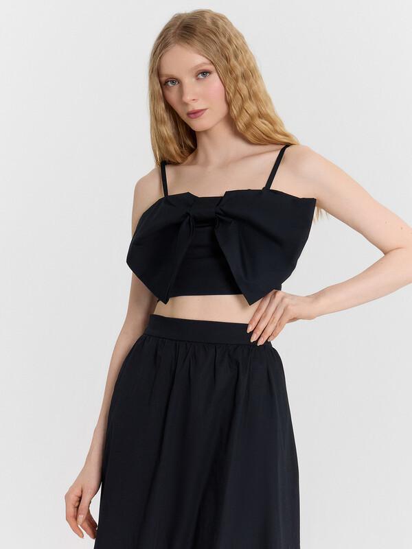 Блуза прилегающего силуэта на тонких бретелях. Бретели с регулировкой (на кольца и регуляторы пластик 10мм). Блуза на подкладке из основного полотна. На детали переда рельефы. Спинка со сборкой на эластичную тесьму по центральной детали спинки (внутр. 6мм).