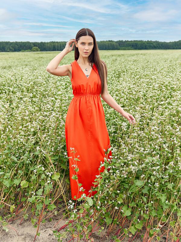 Сарафан отрезной по талии с внутренней эластичной тесьмой.