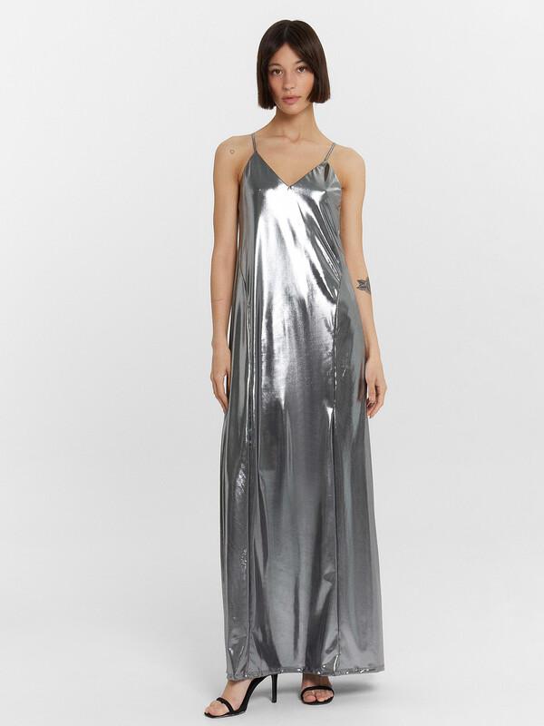 Сарафан полуприлегающего силуэта, длиной макси на подкладке. Сарафан на бретелях с регулировкой по длине на кольца (металл М006 6мм) и регуляторы (металл М806L 6мм). Горловина V-образной формы. По спинке глубокий вырез. На детали переда от бокового шва вертикальные рельефы. Спинка со средним швом. Подкладка укороченная. Нижний срез обработан швом вподгибку.