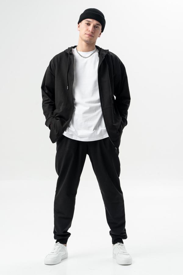 Куртка мужская из мягкого хлопкового футера имеет капюшон на шнурке, карманы кенгуру и манжеты на рукавах, благодаря чему модель смотрится стильно и модно. Рукава объемные со спущенным плечом. Идеальный вариант для тех, кто любит изделия с молнией.