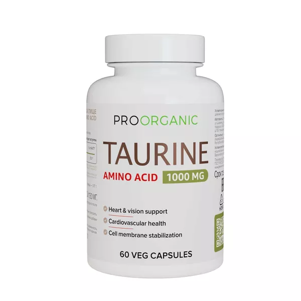 TAURINE PROORGANIC отлично усваивается с другими органическими витаминами линейки PROORGANIC.