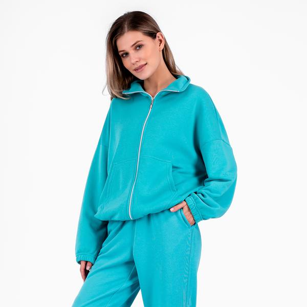 Женская куртка на молнии, с воротником-стойкой и карманом "кенгуру".
