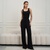 Комбинезон с брючинами прямого кроя, резинкой по линии талии и открытым верхом с вырезом "каре".