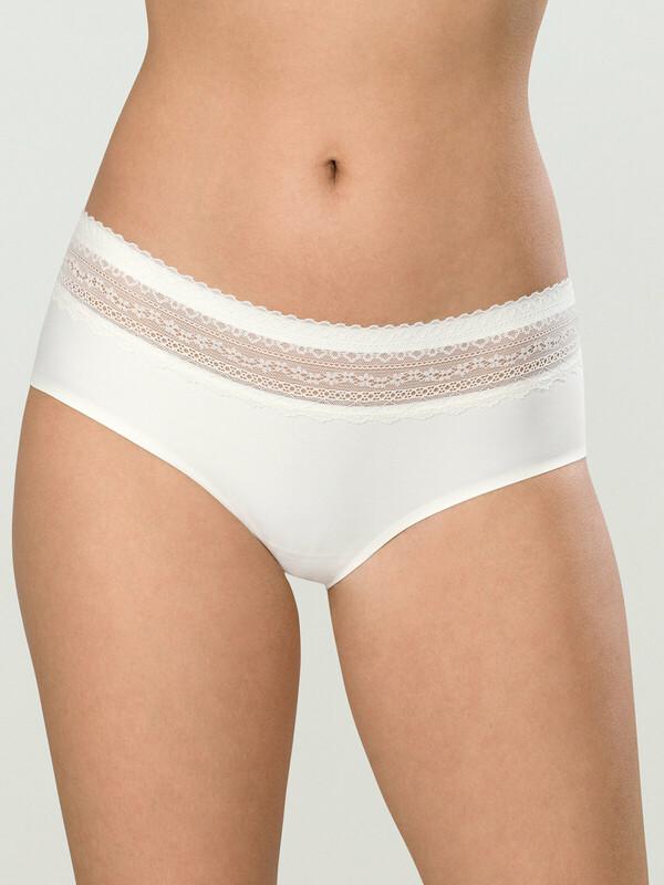 Женские трусы-шорты с низкой посадкой. Изготовлены по бесшовной технологии с минимум швов. Кромки по ноге и по талии подогнуты и приклеены, хлопковая приклеенная ластовица. Нежное геометричное кружево по линии талии высотой 5 см – не передавливает тело и не натирает кожу. Модель оценят те, кто ищет незаметное и невесомое белье на каждый день или особого случая.