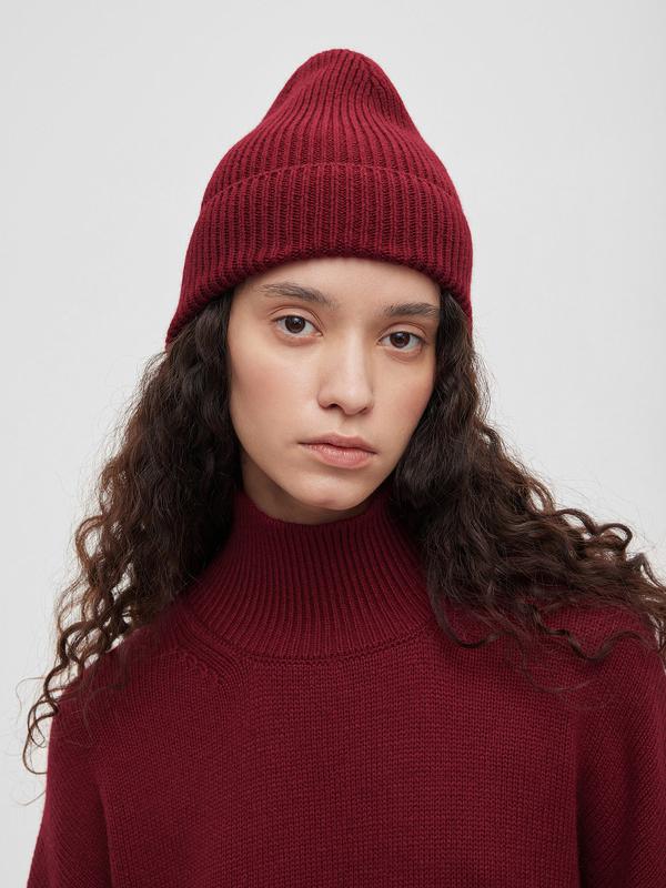 Шапка в рубчик с отворотом. Комбинация пуха ангорского кролика и тонкой шерсти в составе создают текстуру с характерным ворсом.