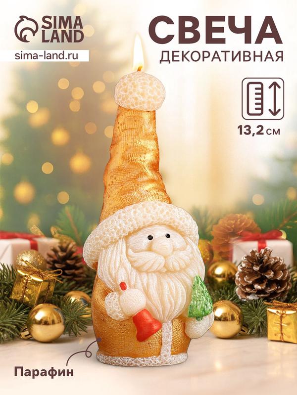 Свеча декоративная «Сказочный Санта», 5.7×5.8×13.2 см, металлик