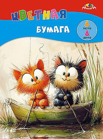 / Набор цветной бумаги А4 8л 8цв от 3+"Котята на рыбалке" С1279-25 АппликА {Россия}