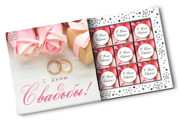 <ul><li>Состав: Какао тёртое, сахар, какао масло, эмульгатор лецитин, натуральный ароматизатор «Ваниль». Общее содержание сухого остатка какао — не менее 36,8%.</li> <li>Срок годности: 18 мес.</li> <li>Вес: 45 г</li> <li>РРЦ: 345</li> <li>Серия: Кэт 9</li> <li>Вид продукции: Шоколад</li> <li>Размер: 13,6 х 13,6 х 1 см.</li></ul><br/><br/><p>Романтичный и вкусный набор! Отличный подарок для молодожен!</p>