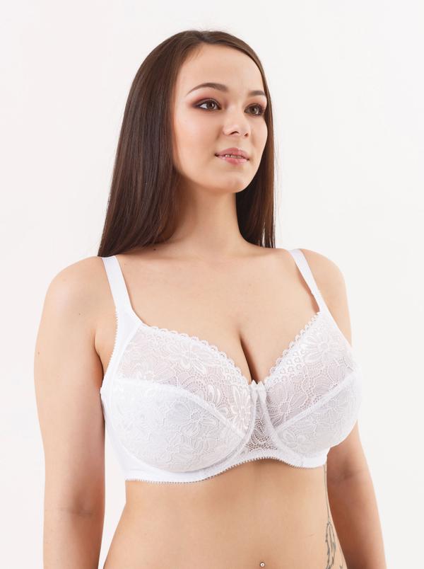 Комфортный бюстгальтер на каждый день, кружевная мягкая чашка с боковой кокеткой на хлопковой трикотажной подкладке, на каркасах. Верхняя часть чашки укреплена подкладкой из эластичной сетки (кроме размеров 75С, 75D, 80B, 80C, 85B).