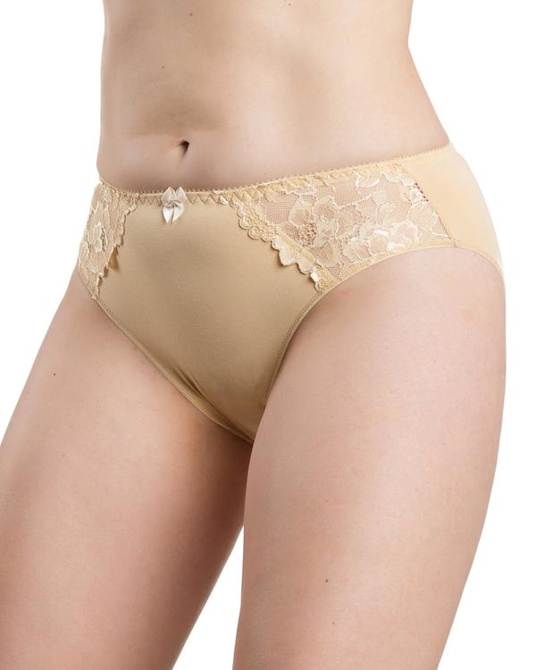 Трусы – слипы со средней линией талии из хлопкового трикотажа с лайкрой и эластичного кружева. Эта модель трусов может быть выполнена с применением эластичного кружева другого артикула для улучшения внешнего вида.
