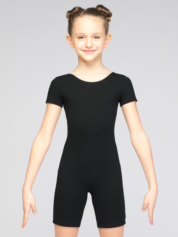 Вы можете купить комбинезон для гимнастики, который подходит как для мальчиков, так и для девочек. Верхняя часть комбинезона с глубоким вырезом на спине и коротким рукавом, а нижняя выполнена в виде удлиненых шорт - велосипедок. Гимнастический комбинезон сшит из эластичного хлопкового полотна, состав которого: 88% хлопок и 12% эластан. Ткань разработана специально для производства спортивных изделий. Имеет хорошую воздухопроницаемость и высокую устойчивость к трению. Хлопок гарантирует коже комфортные ощущения, а эластан придает изделию эластичность, несминаемость, и после стирки изделие выглядит идеально.