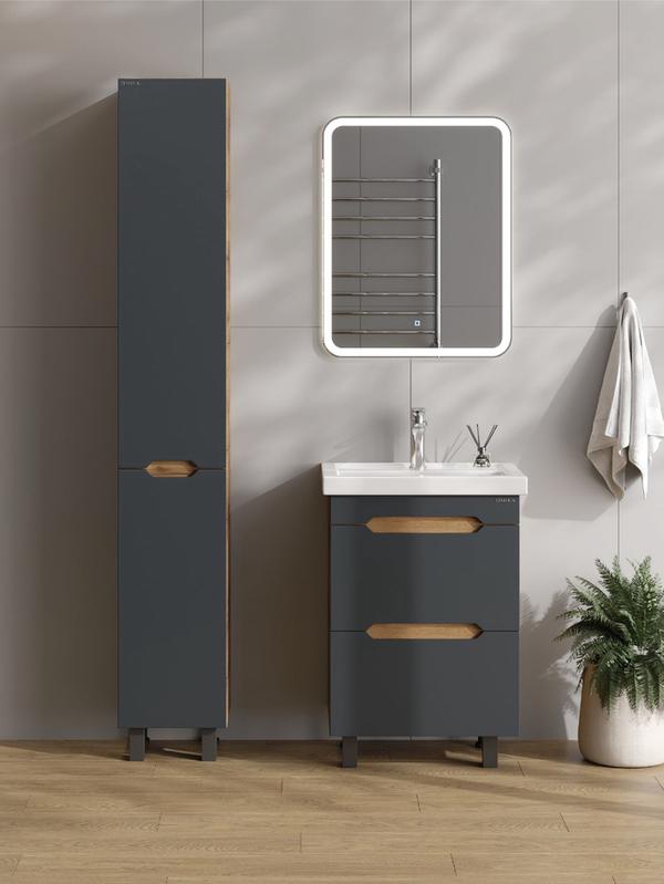 Шкаф – пенал для ванной комнаты Onika «Айленд 30», правый, 300×275×1900 мм, цвет графит/дуб крафт золотой
