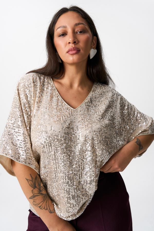 Расслабленная блуза из мягкого трикотажа с пайетками.