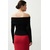 Стильный женственный топ из вискозного трикотажного полотна. Прилегающий силуэт, функциональный широкий и двойной отворот на плечах.