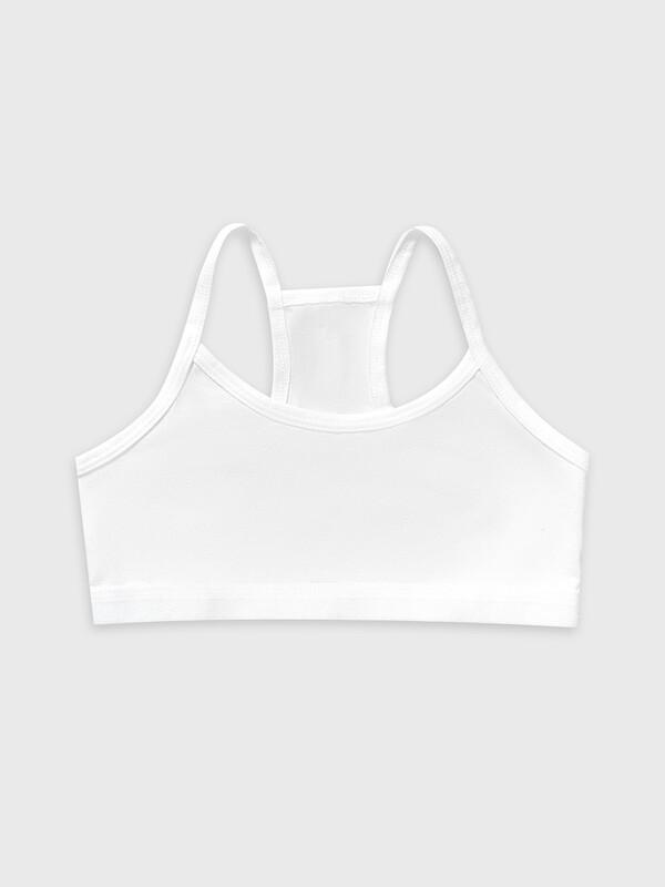 Бюстье из трикотажной кулирки. Горловина округлой формы. Спинка фигурная, как в спортивном топе. Все срезы окантованы бейкой из основного полотна. По нижнему срезу настрочена жаккардовая эластичная тесьма.