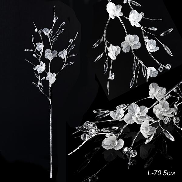 / Ветка декоративная стеклярус 70 см / SA15335 /уп 120/360/серебро
