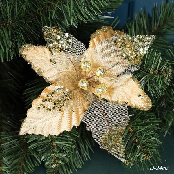 / Цветок декоративный Пуансеттия 24 см золото / NG33-15 /уп 60/600/
