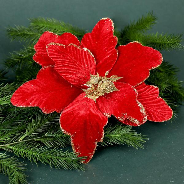 Цветок декоративный Пуансеттия 20 см красная / CTX12-116 /уп 80/480/